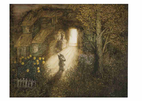 Волчок в дверях старого дома. Размер А2. В раме под стеклом.