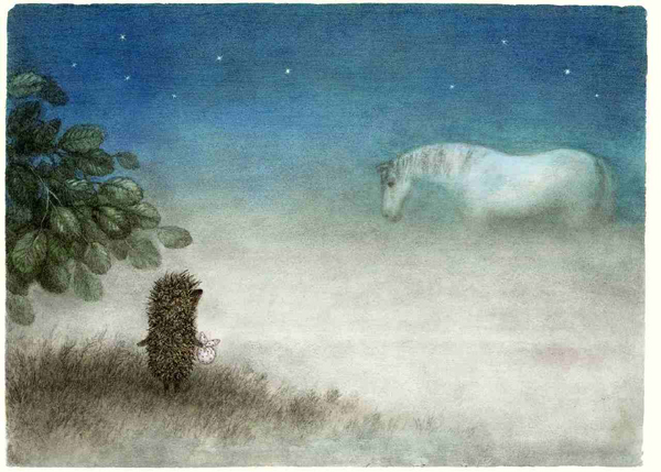 Ежик и Лошадь в тумане. Размер А2. В раме под стеклом.