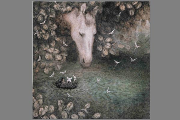 Ежик в воде и лошадь. Размер А2. В раме под стеклом.