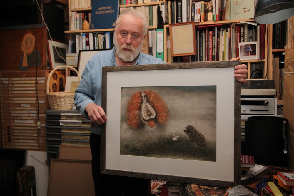 Ежик и Собака. Размер А2. В раме под стеклом.
